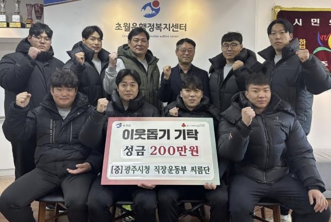 광주시청 직장운동부 씨름단 윤상호 회장과 최기선 감독은 “도움이 필요한 어려운 이웃들에게 희망이 싹트는 계기가 되길 바란다”며 “앞으로도 지역사회에 꾸준한 관심을 갖고 이웃돕기를 실천할 수 있도록 노력하겠다”고 기탁 소감을 전했다.