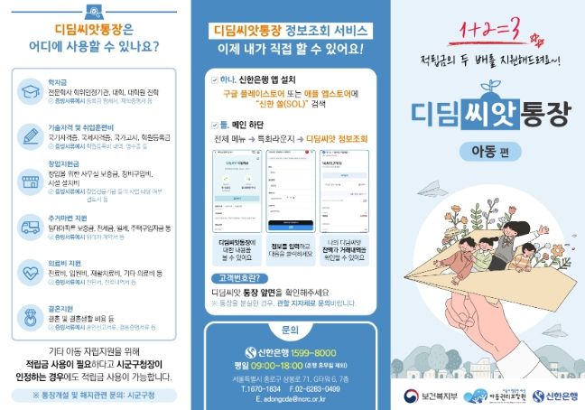디딤씨앗통장은 아동이 적립한 금액을 정부에서 1대 2로 매칭해 지원하는 사업으로 적립금은 18세 이후 학자금, 창업지원, 기술자격 및 취업 훈련, 주거비 등으로 사용 가능한 아동 대상 자산 형성 지원사업이다.