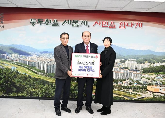 (중부시사신문) 동두천시 푸드테크 기업 ㈜우리집식품은 8일 관내 저소득층을 위해 성금 3백만 원과 김장 김치 400박스(400만 원 상당)를 기부했다고 밝혔다.