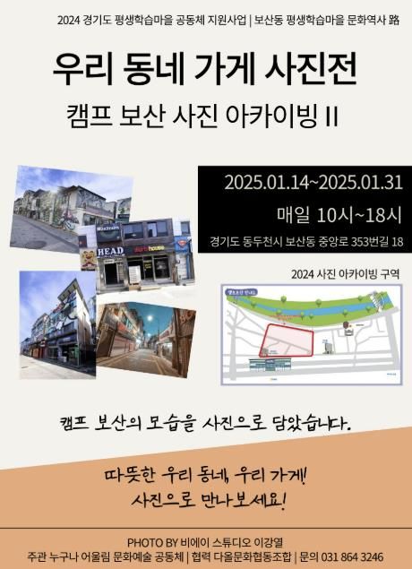 이번 사진전 역시 캠프 보산의 소중한 일상을 기록하고, 동네 가게들의 따뜻한 매력을 조명하기 위해 지역 주민들과 협력한 소중한 프로젝트이다.