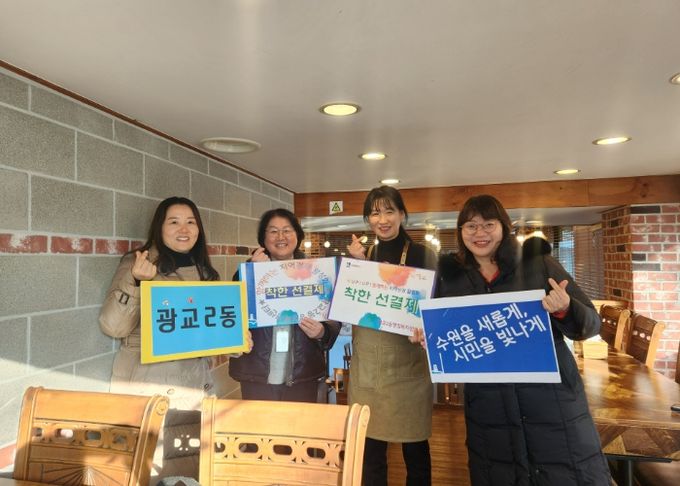 이날 착한 선결제 캠페인은 광교2동 행정복지센터 직원들이 자주 이용하는 관내 식당으로 작은 보탬이 되도록 선결제를 하고 지속적인 방문을 약속했다.
