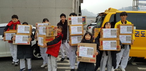 용인시처인노인복지관(관장 김기태)은 17일(수) 복지관 2층 회의실에서 창대태권도장을 다니는 초등학생 등이 마련한 라면 19박스를 후원받았다.