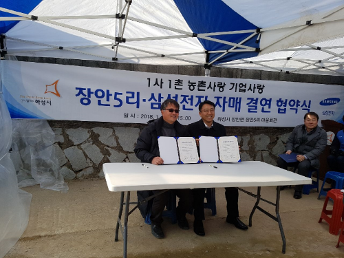 화성시 장안면 장안5리 온수골마을이 23일 마을회관에서 삼성전자 S.LSI 사업부와 도농교류 활성화를 위한 자매결연을 맺었다.