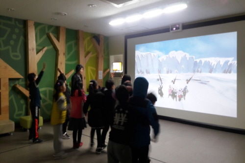‘신나는 체험동화마을’은 대형 스크린을 통해 가상공간에서 펼쳐지는 다양한 동화 속 배경에 아이들을 투영시켜 배경을 직접 만져보는 듯한 실재감을 주며, 배경과 어울려 즐거운 체험을 통한 흥미유발 등 독서진흥을 위해 서비스되는 프로그램이다.