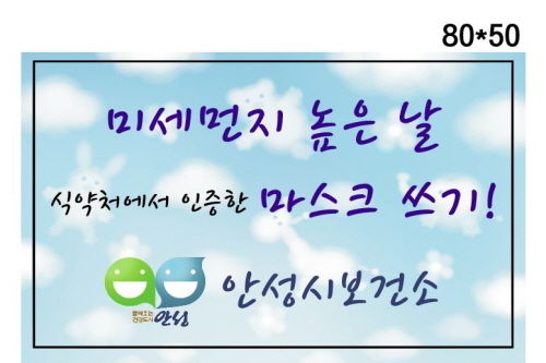 안성시보건소는 날로 증대되는 고농도 미세먼지로부터 시민건강을 보호하기 위해 “마스크 쓰기 운동”을 펼칠 계획이다.