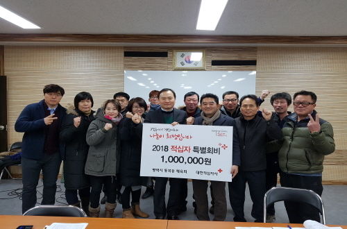 통복동 체육회(진흥회장 구문환)는 지난 25일 주민센터 회의실에서 열린 신년회의에서 2018년도 적십자특별회비 100만원을 전달했다.
