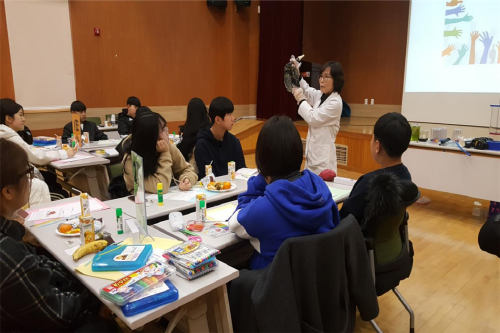 학생들은 흡연 및 음주 가상체험과 미각테스트를 통한 식품첨가물 알아내기, 건강간식 만들기, 자세교정을 위한 척추강화운동, 건강 10계명 만들기 등에 참여했다.