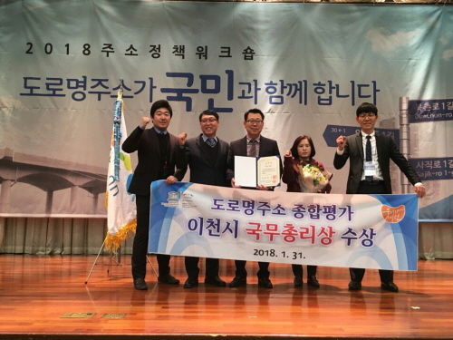 이천시(시장 조병돈)는 31일 행정안전부가 주관한 ‘2018년 주소정책 워크숍’에서 2017년 도로명주소 업무 전국 평가 우수기관으로 선정돼 국무총리 표창을 수상했다고 1일 밝혔다.