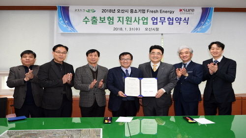 오산시는 지난 31일 오산시청에서 한국무역보험공사와 관내 수출중소기업의 해외시장 개척 시 수입업자의 신용위험과 수입국의 비상위험으로부터 수출대금 회수의 안전 확보로 기업의 新글로벌 시장 수출촉진을 지원하기 위하여 중소기업 수출보험료 지원 업무협약을 체결하였다고 밝혔다.