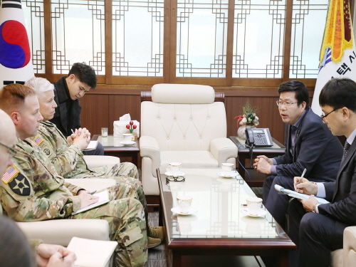 평택시(시장 공재광)는 미8군 행정부사령관으로 새로 부임한 디블릭 소장 및 험프리스 기지 사령관 뮬러 대령 등 미군관계자와 AI (조류 인플루엔자) 확산방지에 노력하는 평택시에 대한 이야기를 시작으로 여러 현안에 대하여 환담의 시간을 가졌다.