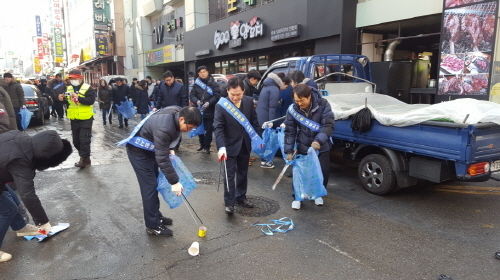 이들은 중앙시장 사거리부터 술막다리, 중앙로 등을 돌며 3㎞구간에서 버려진 쓰레기와 담배꽁초 등 3.5톤의 쓰레기를 수거하고 무단투기 근절 캠페인도 펼쳤다.