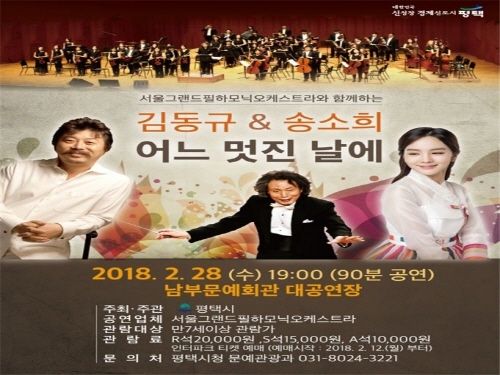 이번 공연은 수준 높은 문화예술에 대한 시민들의 욕구충족을 위하여 평택시가 준비한 기획공연으로 서울그랜드필하모닉오케스트라 연주와 국내 최정상 성악가 김동규, 국악인 송소희가 콜라보 음악콘서트를 선사할 예정이다.