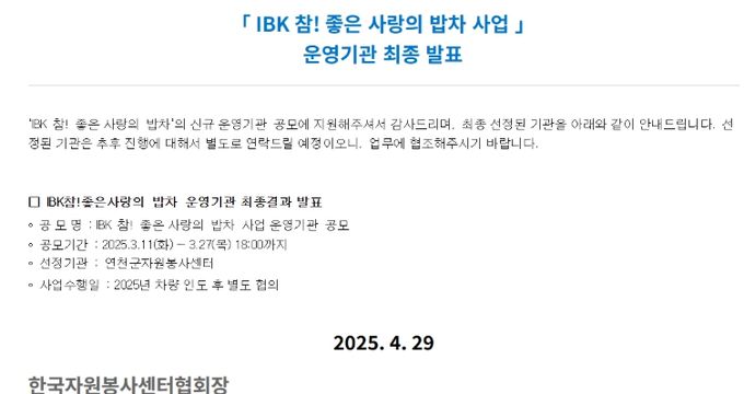 (중부시사신문) 연천군자원봉사센터는 한국자원봉사센터협회의 ‘IBK 참! 좋은 사랑의 밥차 운영기관’으로 최종 선정됐다고 12일 밝혔다.