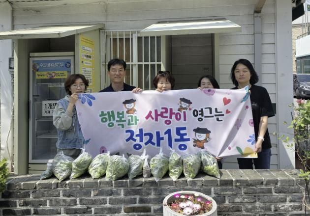 이번 기부는 지난 4월 정자1동 행정복지센터와 정자뜰 운영에 관한 협약을 맺은 주민자치회와 통장협의회, 새마을부녀회, 자원봉사회, 경로당협의회가 그간 정성껏 재배한 농작물을 관내 취약계층이 이용할 수 있도록 공유 냉장고에 후원한 것이다.
