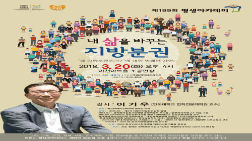 이천시(시장 조병돈)는 오는 20일 오후 4시 이천아트홀 소공연장에서 이기우 인하대학교 법학전문대학원 교수를 초청해 제199회 평생아카데미를 개최한다.