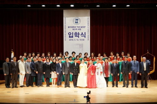 이날 행사에는 홍성희 총장, 박항식 부총장, 안창식 평생교육원장, 이택곤 THE MOST 아카데미 책임트레이너 및 1기 원우 13명이 참석했다. 또한 입학식 축하공연을 위해 유아교육학과 윤영배 교수가 지휘하는 시니어합창단 단원 37여명도 자리했다.
