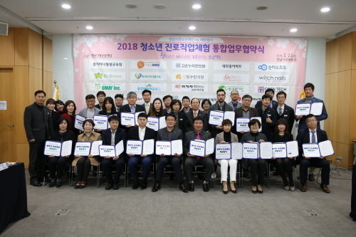 성남시청소년재단에서는 지난 3월 23일 성남시청 율동관에서 청소년 진로직업체험 ‘청바지 프로젝트’에 참여할 지역 내 18개 기업과 청소년을 위한 현장 진로직업체험 지원을 위해 통합 업무협약을 체결했다고 밝혔다.