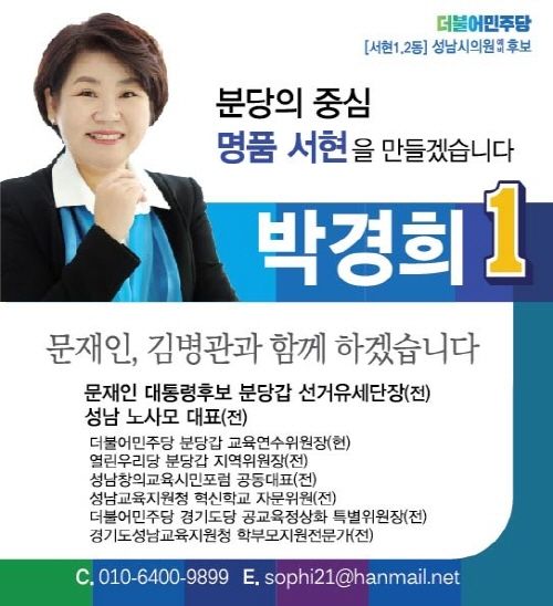 성남시 차선거구(서현1,2동) 기초의원 박경희 예비후보는 출마를 선언하고 출마의 변을 밝혔다.