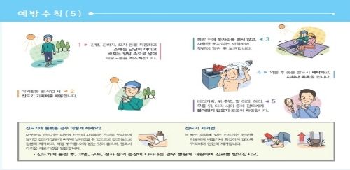 예방수칙으로는 ▲작업복과 일상복, 구분해 입기 ▲작업 시에는 소매를 단단히 여미고 바지는 양말 안으로 집어넣기 ▲진드기기피제 사용 ▲풀밭 위에 옷을 벗어두거나 눕지 않기 ▲풀밭에서 용변 보지 않기 ▲등산로를 벗어난 산길 다니지 않기 ▲작업이나 활동 후 옷을 털고 반드시 세탁하기 ▲즉시 목욕하고 옷 갈아입기 ▲머리카락, 귀 주변, 팔 아래, 허리, 무릎 뒤, 다리 사이 등에 진드기가 붙어 있지 않은지 꼼꼼히 확인하기 등이 있다.