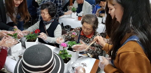 용인송담대학교 간호학과 학생들은 방문한 국가유공자와 보훈가족에게 혈압, 혈당 체크 등 기본적인 건강검사와 치매예방프로그램의 일환으로 제라늄 화분 만들기, 체조예방체조 등 다채로운 프로그램을 진행하였다. 특이 이날 직접 만든 제라늄 화분은 그 꽃말이 “당신이 있어 행복합니다”로서 참여한 보훈가족에게 봉사자들이 전하려는 메시지를 대신하였다. 이 날 행사에 참석한 국가유공자는 "혈당과 혈압체크도 하고 봄을 맞이하여 제라늄 화분을 직접 만들어 볼 수 있어서 마음이 따뜻해지는 기분 좋은 시간이었다. "라고 말했다.