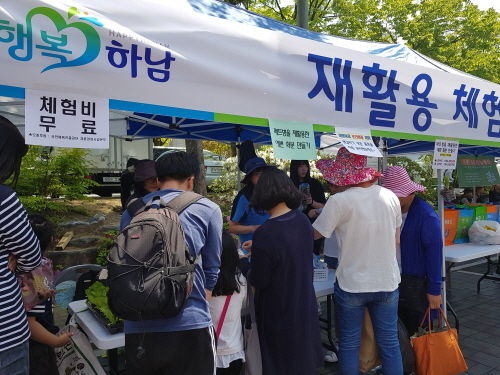 이번 행사는 최근 이슈가 되고 있는 재활용 문제의 시민 동참을 위해 ▲재활용품으로 화분 만들기, ▲ 분리배출 방법 안내, ▲ 쓰레기 줄이기 다짐, ▲ 1회용 비닐봉투대신 장바구니 사용하기 등 다양한 행사를 개최했다.