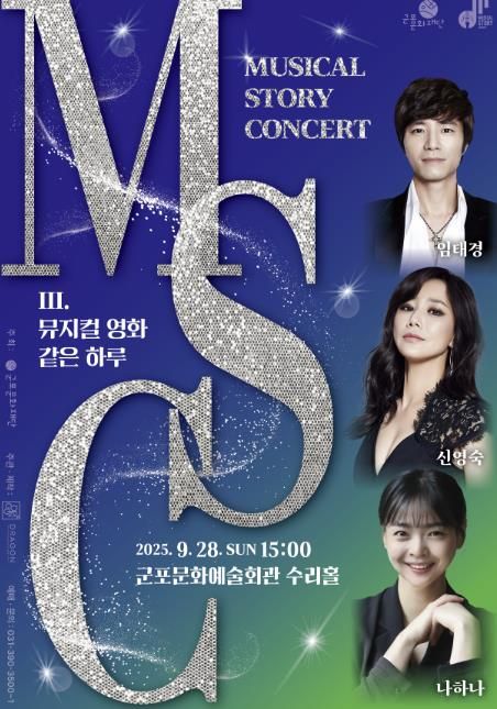 (중부시사신문) (재)군포문화재단은 오는 9월 28일 오후 3시 군포문화예술회관 수리홀에서 기획공연 “뮤지컬 스토리 콘서트 Ⅲ. 뮤지컬 영화 같은 하루”를 선보인다.