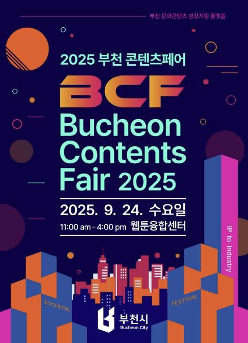 (중부시사신문) 부천시는 9월 24일 오전 11시 웹툰융합센터에서 ‘2025 부천 콘텐츠페어’를 연다. 이번 행사는 ‘From IP to Industry’를 주제로 우수 콘텐츠 지식재산권(IP)의 비즈니스 확장, 투자유치, 판로개척을 지원하기 위해 마련됐다.