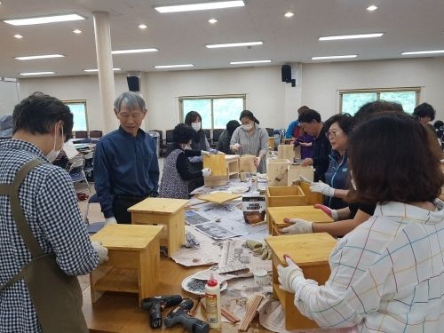 이번 교육은 5회에 걸쳐 시민 25명을 대상으로 전동드릴과 공구를 이용해 좌탁, 화장대, 핸드폰거치대 겸 우드스피커 등 실생활에 유용한 원목 공예품을 만드는 과정으로 운영됐다.