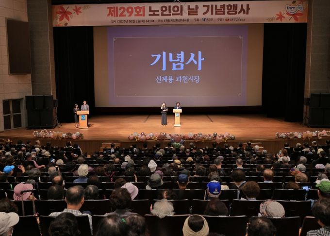 (중부시사신문) 과천시는 2일 시민회관 대극장에서 ‘제29회 노인의 날 기념식’을 열었다. 시가 주최하고 과천시노인복지관이 주관한 가운데 열린 이날 행사에는 지역 어르신 1천1백여 명이 참석했다.