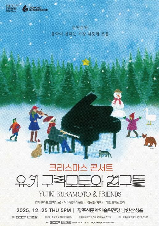 (중부시사신문) (재)광주시문화재단은 오는 12월 25일 오후 5시, 광주시문화예술의전당 남한산성홀에서 ‘2025 크리스마스 콘서트 '유키 구라모토와 친구들'을 개최한다.