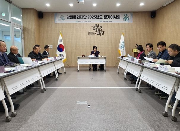 (중부시사신문) 강원문화재단은 올해 재단 운영의 성과를 되짚어 보고, 2026년도 사업계획 및 취업규칙 정비를 위한 제규정 개정안 등을 논의하는 2025년도 정기이사회를 17일 재단 회의실에서 개최했다.