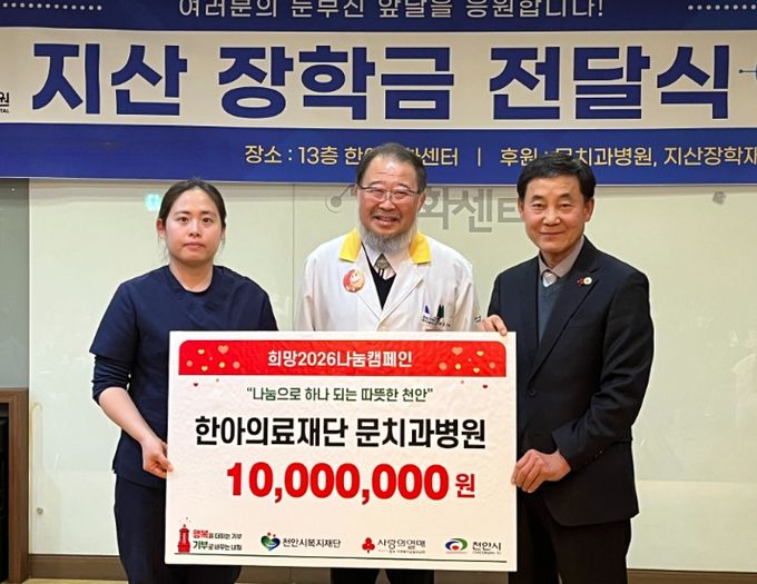 (중부시사신문) (재)천안시복지재단은 지난 22일 한아의료재단 문치과병원이 학업장려금 3,000만 원을 기탁했다고 밝혔다.
