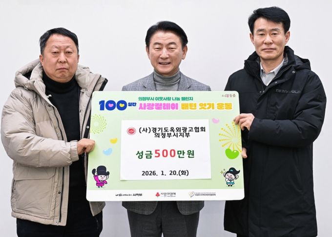 (중부시사신문) 의정부시는 1월 20일 (사)경기도옥외광고협회 의정부시지부가 ‘100일간 사랑릴레이 배턴 잇기’에 동참해 성금 500만 원을 기탁했다고 밝혔다.
