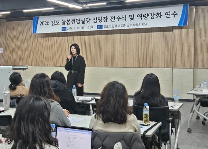 (중부시사신문) 경기도김포교육지원청은 2월 10일 2026 늘봄전담실장 25명을 대상으로 임명장 전수식과 함께 초등 방과후·돌봄 교육 운영의 전문성 및 현장 대응 역량 강화를 위한 ‘2026 늘봄전담실장 역량강화 연수’를 실시했다.