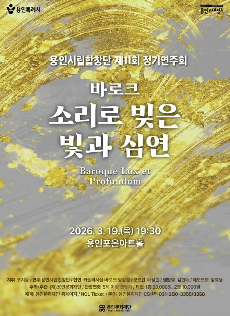 (중부시사신문) 용인문화재단은 오는 3월 19일 오후 7시 30분, 포은아트홀에서 용인시립합창단 제11회 정기연주회 '바로크 – 소리로 빚은 빛과 심연'을 개최한다.