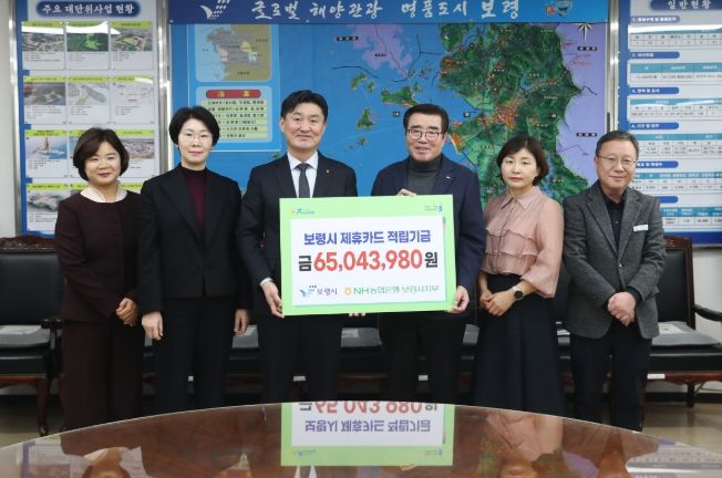 (중부시사신문) 보령시는 27일 시장실에서 김동일 시장과 성지현 NH농협은행 보령시지부장 등 관계자가 참석한 가운데 법인제휴카드 사용 적립금 전달식을 가졌다.