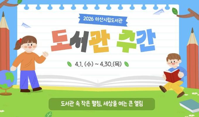 (중부시사신문) 아산시립도서관은 4월 도서관 주간을 맞아 4월 1일부터 30일까지 한 달간 시민과 함께하는 다양한 독서 문화 행사를 운영한다.