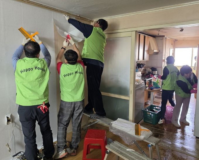 이번 봉사는 노후화된 주거환경으로 생활에 어려움을 겪고 있는 취약계층 가구를 대상으로 진행됐으며, 집수리봉사단은 도배와 장판 교체 작업을 통해 쾌적하고 안전한 생활공간을 마련하는 데 힘을 보탰다.