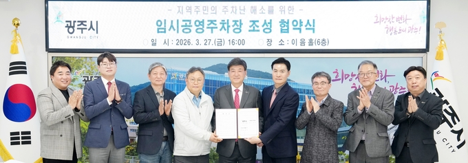 (중부시사신문) 광주시는 고산동 산70-8 일원에 임시 공영주차장 조성을 위해 27일 ㈜해성디엔씨 및 고산개발㈜와 부지사용 협약을 체결했다.