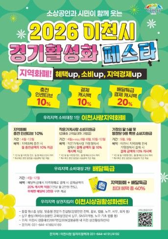 (중부시사신문) 이천시는 침체된 지역경제에 활력을 불어넣기 위해 2026년 4월 3일부터 ‘2026 이천시 경기 활성화 페스타’를 본격 추진한다고 밝혔다.
