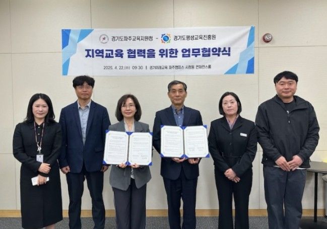 (중부시사신문) 경기도파주교육지원청은 22일, 경기도평생교육진흥원과 파주 지역 미래인재 양성을 위한 교육 협력 체계 구축 및 상호 자원 공유를 골자로 하는 업무협약(MOU)을 체결했다고 밝혔다.