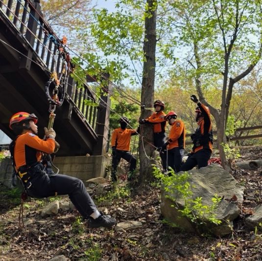 이날 훈련은 ▲ 로프를 활용한 위험지역 접근 및 인명구조 ▲들것을 활용한 구조대상자 이송 ▲산악지형 위험요소 파악 및 안전관리 ▲계곡 지형을 활용한 풍수해 대비 수난구조 기법 등 다양한 상황을 가정해 실전처럼 이뤄졌다.