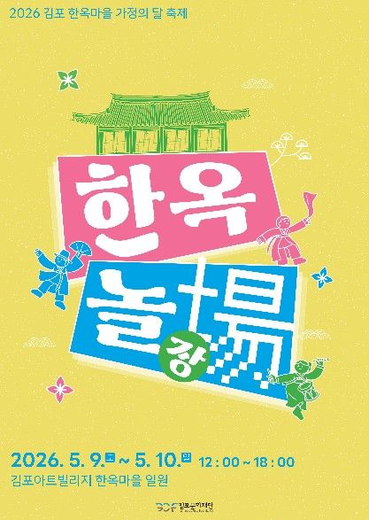 (중부시사신문) 김포문화재단은 오는 5월 9일부터 5월 10일까지 양일간 김포아트빌리지 한옥마을 일대에서 ‘2026 김포 한옥마을 가정의 달 축제 '한옥놀장(場)'’을 개최한다고 밝혔다.