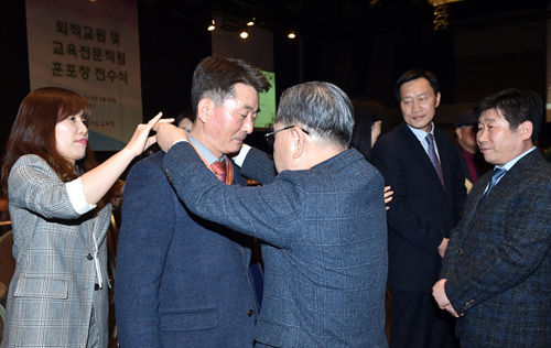 경기도교육청(교육감 이재정)은 2월 28일 수원 신텍스에서 2019년도 2월말 퇴직교원․교육전문직원 575명에게 훈ㆍ포장을 전수했다.