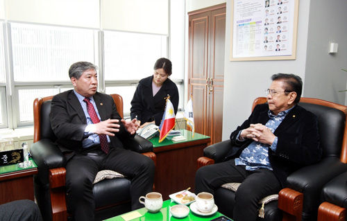 송한준 전국시도의회의장협의회 회장(경기도의회 의장/더민주, 안산1)이 28일 오전 협의회 사무처 접견실에서 챠빗 싱송(Chavit Singson) 필리핀 지방의원협의회 회장(PCL, President of Philippine Councilors League)을 접견하고, 상호 협력 방안을 논의했다.