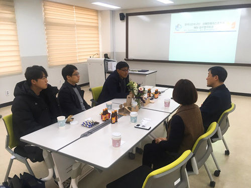 2월 28일 한국복지대학교에서 진행된 협약식에는 평택시민축구단 윤상철 대표이사, 한광민 사무국장, 이성진 사원, 한국복지대학교 장애인레저스포츠과 오광진교수, 정소영 연구사, 윤자영 조교가 참석했다.