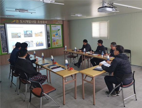 건설사업관리용역사(감리단장)로부터 주요공정 추진사항 및 현재까지 토목공정 실적이 16.2%에 대한 보고를 받고 창조도시사업국장은“1년여 동안 사업추진에 박차를 가하고 무사고 사업추진에 감사드리고, 해빙기 도래로 사업추진에서 발생하는 사고를 사전에 방지하고 민원발생 최소화와 부실시공이 되지 않도록 성실시공에 만전을 기해달라” 당부했다.