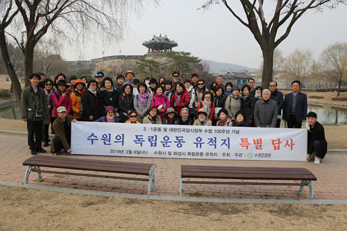 수원시는 6일 시민들이 수원 방화수류정, 화성 제암리 3.1운동 순국기념관 등을 둘러보고, 독립정신을 되새기는 ‘3.1운동 항일유적지 탐방’을 열었다.