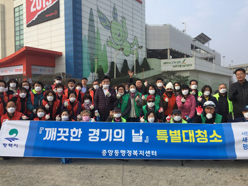 평택시 중앙동행정복지센터(동장 김대규)는 7일 중앙동 8개 단체 회원 및 자원봉사자 등 100여명이 참여하여 깨끗하고 쾌적한 우리 동네를 만들기 위해 ‘주민과 함께하는 봄맞이 대청소’를 실시했다.