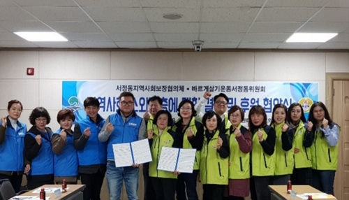 두 단체는 상호신뢰를 바탕으로 서정동의 어려운 이웃들을 지원하기 위해, 복지사각지대 발굴, 결연 및 후원, 주민친화 사업 진행 등을 협력코자 본 협약을 체결했다.